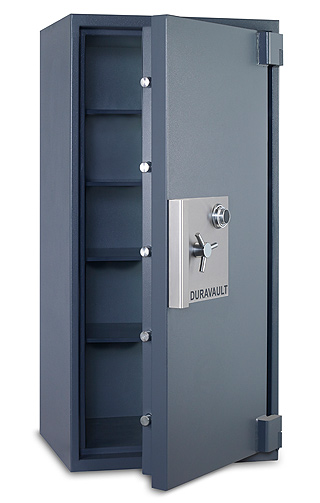 Duravault TL30 SeriesUL TL30 High Security Composite Burglary SafeThe Duravault offers the ultimate in TL30 protection. With its high-tech 2 1/2” thick body and 5 1/2" thick door utilizing our proprietary barrier material, modern high-strength alloy, sophisticated glass relocking system, high security combination locks and massive boltwork, the Duravault is our latest generation of TL30’s to successfully receive UL approval. Two-Hour Fire ResistanceThe Duravault TL30 has been successfully tested by an independent laboratory and boasts a two-hour manufacturer’s fire rating for your peace of mind. LocksUL listed Group 2M combination lock with spy-proof dial. BoltworkMassive full length stainless steel locking bar. Glass RelockersA sophisticated tempered glass relock system activates multiple independent relockers to protect against drilling, torch and explosive attacks. InteriorAll models are supplied with adjustable shelves. Options AvailableUL listed electronic digital locks, Time locks, Inner compartments / lockers Specifications